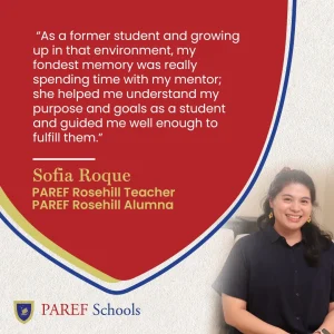 Parents For Education Foundation Educating Men and Women of Character The educational philosophy of PAREF Schools is inspired by the teachings of St. Josemaria Escriva on two main ideas – (1) integral education; and (2) parents as the primary educators of their children. Integral education develops a child into a well-rounded individual by forming all aspects of his person—the physical, social, intellectual, moral, and spiritual—in an atmosphere of love for the truth, as well as respect for the dignity and freedom of the person. The education of children is, first and foremost, the responsibility of parents. Therefore, collaboration and partnership between the school and the home are essential to ensure the student’s integral development that help him achieve his potential and direct him towards doing good. The PAREF System is now a big family with seventeen (17) schools. With PAREF’s existence spanning almost 5 decades, we have graduated more than 8,000 students; most of whom are already engaged in the world of work. These are the people whose lives we have touched; whose minds and hearts we hope continue to positively transform society from within. Academics Academic excellence is a vital aspect of the PAREF education. It is based on an integrated approach that balances the student’s intellectual, moral, social, spiritual, and physical development. Personal Formation The PAREF personal formation program consists of means of formation over and above the academic program that aim for one’s integral development. These means of formation endeavor to lead each student to a greater self-knowledge to prepare the student for life here and hereafter. Mentoring System Every student is assigned a personal mentor who becomes the student's life coach and friend. The PAREF mentoring system paves the way for each individual’s character growth and development, which consequently impacts the student's academic performance. OUR CAMPUSES PAREF Woodrose School For Girls Ayala Alabang, Muntinlupa PAREF Southridge School For Boys Hillsborough, Muntinlupa PAREF Rosehill School For Girls Antipolo Rizal PAREF Northfield Sun Valley School For Boys Sun Valley Campus, Antipolo Rizal PAREF Southcrest School For Girls Cebu, Visayas PAREF Springdale School For Boys Cebu City, Cebu PAREF Westbridge School For Boys La Paz, Iloilo City PAREF Students are thriving at these top universities both here and abroad. PAREF Preschools PAREF Preschool Rosemont, Ayala Alabang PAREF Preschool Rosefield South Triangle, Quezon City PAREF Preschool Rosehill, Mission Hills, Antipolo PAREF Preschool Ridgefield, Hillsborough, Muntinlupa PAREF Preschool Southdale, Banilad, Cebu City PAREF Preschool Ridgefield-Iloilo, La Paz, Iloilo City PAREF Preschool North Rim, Marikina City PAREF Preschool Rosevale, Cagaya de Oro KNOW MORE AFFILIATED INSTITUTIONS